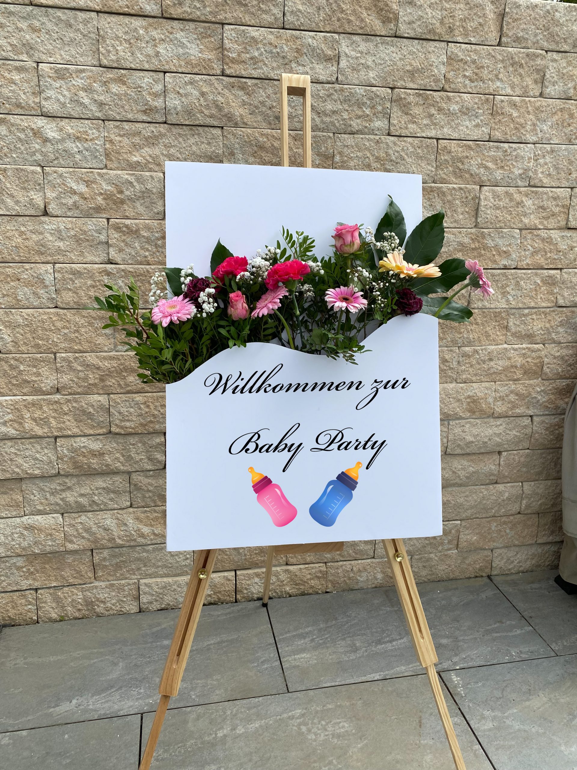 Ein Willkommensschild zur Taufe vermittelt direkt eine warme, liebevolle Stimmung. Mit Babyname, Taufdatum und zarten Blumen in Pastelltönen wird es zum emotionalen Deko-Element am Kircheneingang, bei der Tauffeier oder auf dem Geschenketisch. Auch danach ein schönes Erinnerungsstück fürs Kinderzimmer.