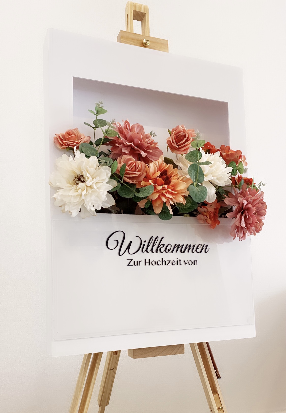 3D WAVE WILLKOMMEN SCHILD BLUMEN BOX MIT ACRYL