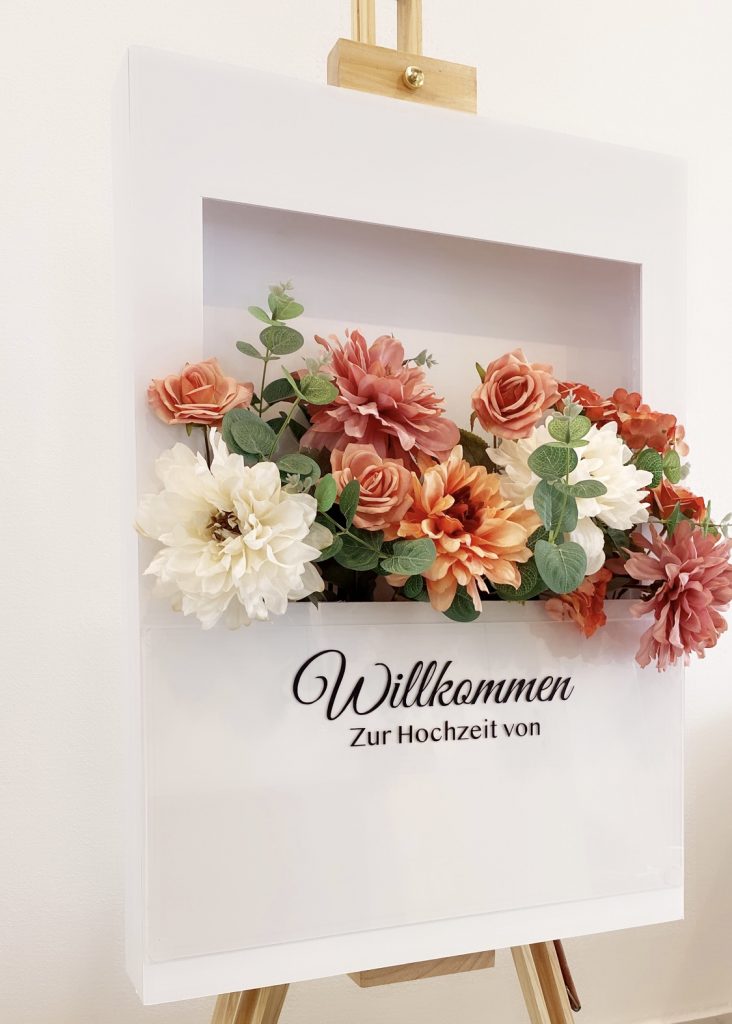 3D WAVE WILLKOMMEN SCHILD BLUMEN BOX MIT ACRYL