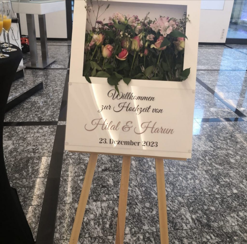 Ob Hochzeitsmesse oder Handwerkermesse – ein personalisiertes 3D-Willkommensschild mit Logo oder Claim verleiht deinem Stand sofort Professionalität und Charme. Ideal für Eventplaner, Floristen oder Deko Dienstleister, die mit Stil und Liebe zum Detail überzeugen wollen.